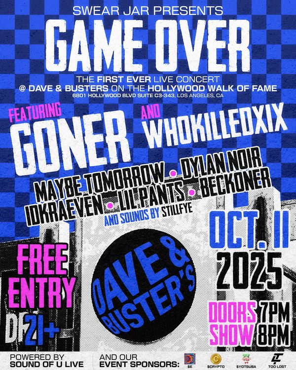 Swear Jar Presents GAME OVER - The first ever live concert at Dave & Busters on the Hollywood Walk of Fame featuring GONER, Whokilledxix, Ma...